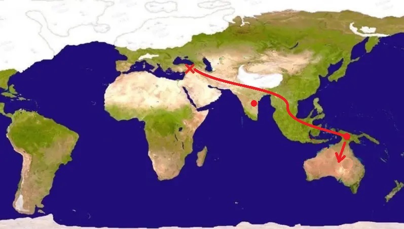 Some might say, “But the route through India and Indonesia just works so well. Wouldn’t an Indian Ocean crossing be okay, just because going through India works so well with the kangaroo-like rock art in Andhra Pradesh?” I want to make it clear: Robinson did not make this claim. He connected the Middle East, Indonesia, and Australia, and in doing so happened to cross India. However, I have already critiqued passing through Indonesia and missing New Guinea and creating an unnecessary oceanic voyage. I am addressing a separate argument, wherein some might prefer Robinson’s route because it “works so well” with the Andhra Pradesh rock art.